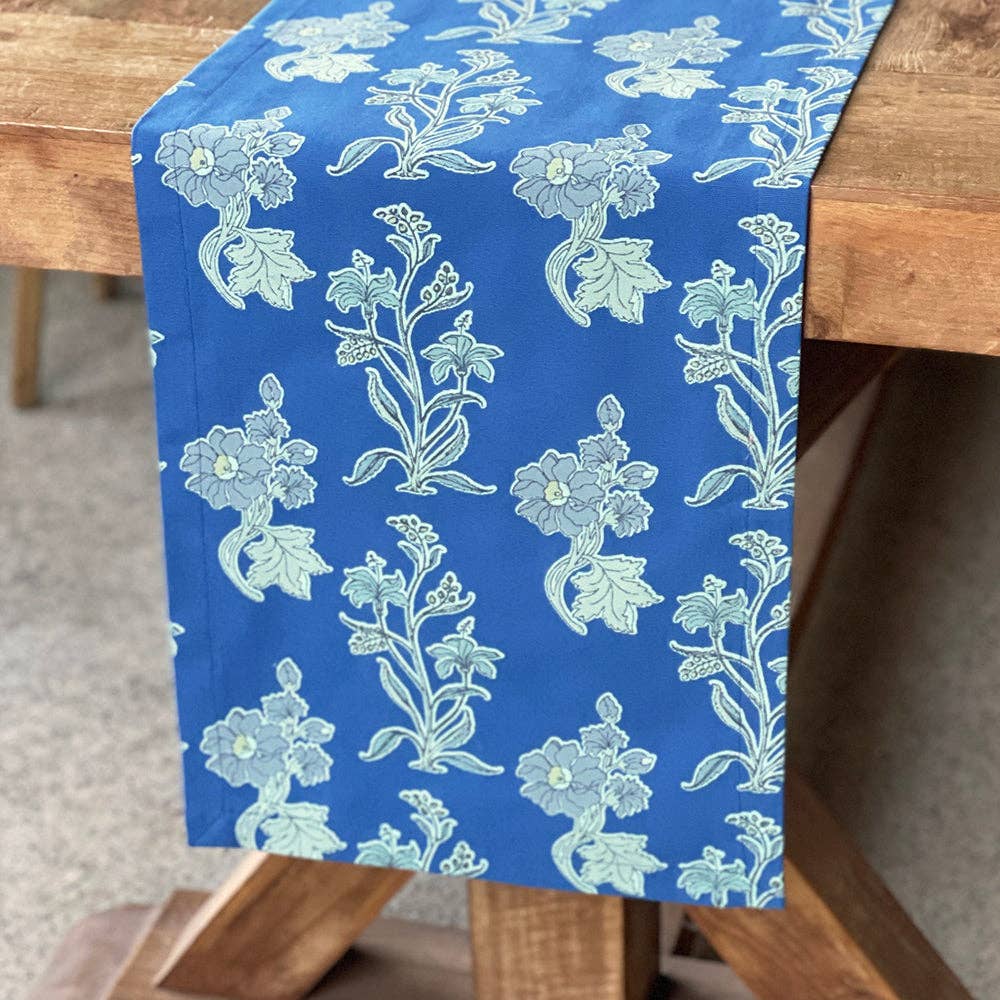 Handscreen printed runner. 13"X72". 100% Cotton. Machine wash in cold water. Low heat tumble dry. Made in India